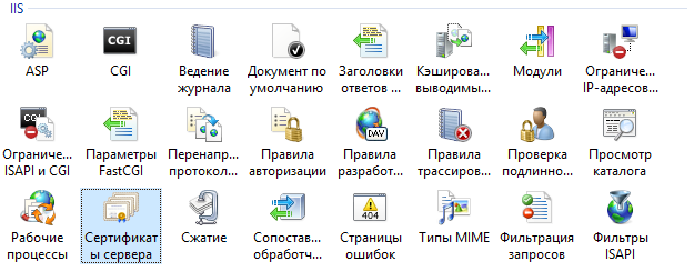 Запустите диспетчер служб IIS, на начальной странице откройте