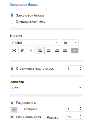 Если флажок «Заголовок блока» установлен, то заголовок отображается и доступны следующие операции: