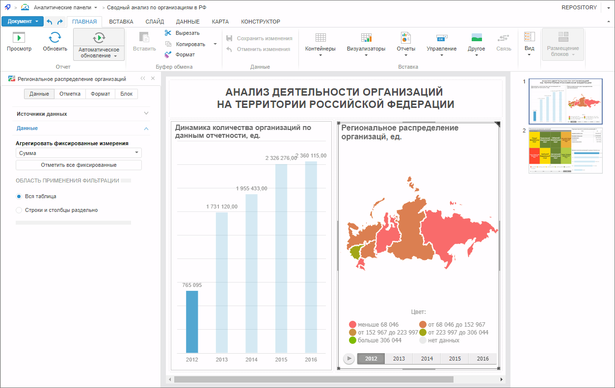 Построение аналитической панели | Экспорт аналитической панели в режиме слайдов