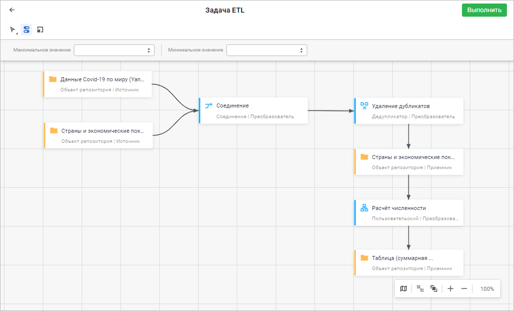 Для начала работы с инструментом в веб-приложении смотрите статью «Начало работы с инструментом «Задача ETL» в веб-приложении».