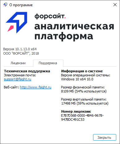 контактная информация службы технической поддержки ООО «ФОРСАЙТ»;