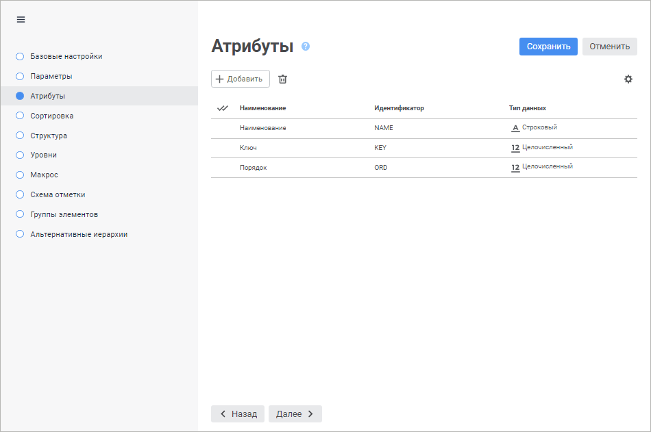 Сортировка. Определяется набор и порядок атрибутов, по которым будет производиться сортировка элементов справочника;
