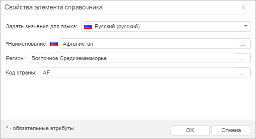 Для получения подробной информации об изменении вида отображения диалога «Свойства элемента справочника» обратитесь к статье «Замена предустановленного вида диалога».