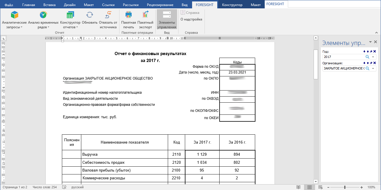 Начало работы с надстройкой Foresight Add-in for Word | Построение отчёта с использованием надстройки