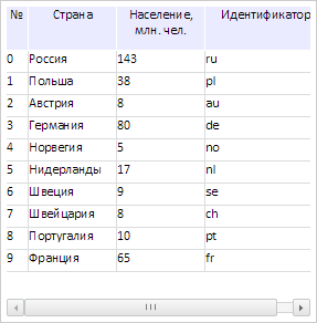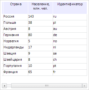 Для выполнения примера необходимо наличие на html-странице компонента DataGrid с наименованием «grid» (см. «Пример создания компонента DataGrid»). Изменим ширину четвертого столбца и добавим обработчик события изменения положения горизонтальной полосы прокрутки: