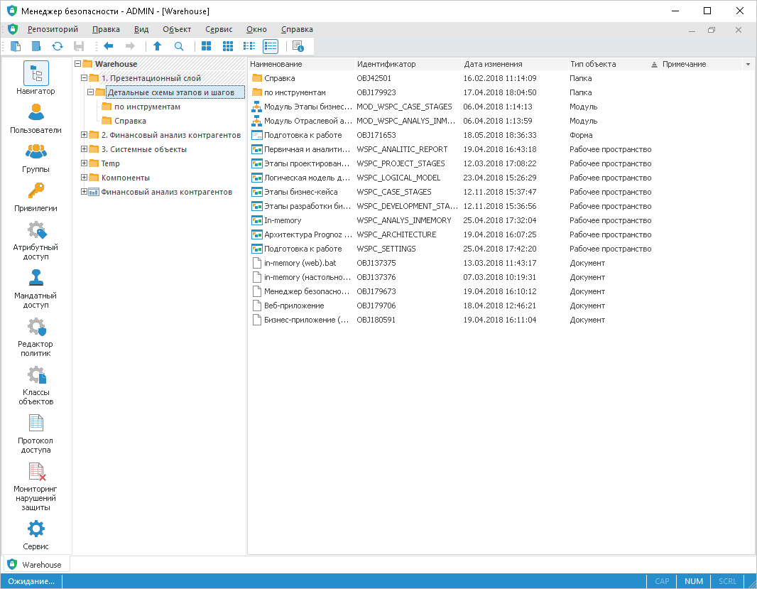 Раздел «Администрирование и контроль доступа» содержит описание менеджера безопасности продукта «Форсайт. Аналитическая платформа».