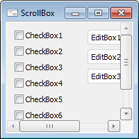 Компонент ScrollBox реализует контейнер для других элементов управления с возможностью прокрутки содержимого.
