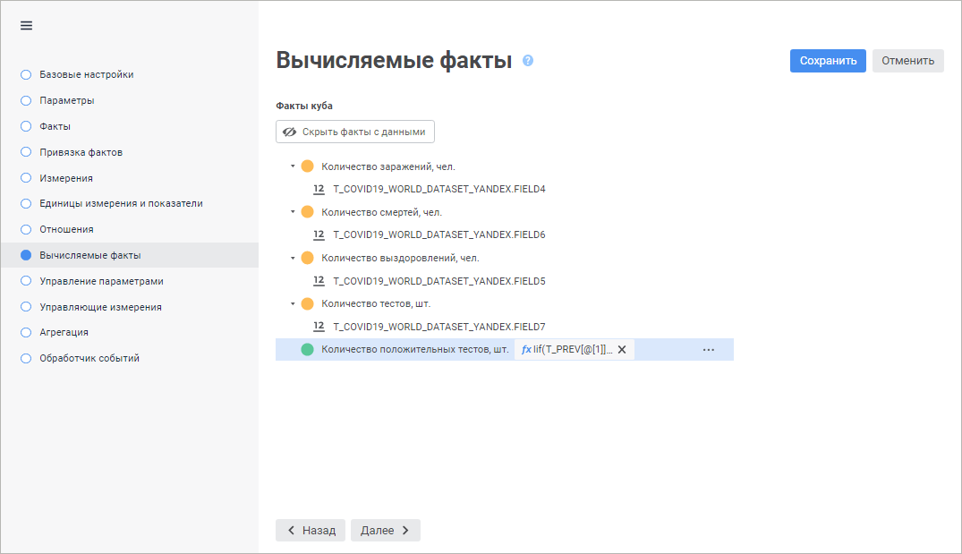 Настройка вычисляемых фактов