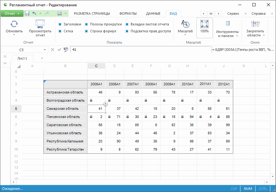 При настройке регламентного отчета реализована возможность включения отображения пиктограмм для ячеек, на которые у пользователя нет прав.