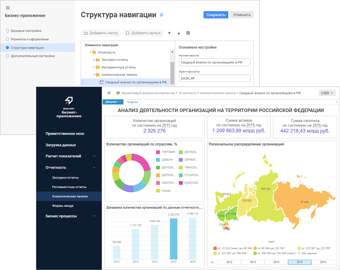 Для визуального конструирования бизнес-приложений используйте расширение «Конструктор бизнес-приложений» продукта «Форсайт. Аналитическая платформа»: