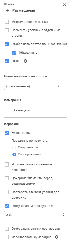 Для отображения в боковике/шапке уровней измерения в отдельных строках без повторения родительских элементов установите флажок «Многоуровневый боковик»/«Многоуровневая шапка».