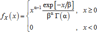 Гамма-распределение с параметрами α, β > 0 характеризуется функцией плотности вероятности: