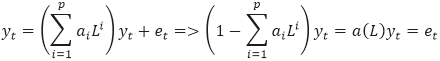 С помощью оператора лага L: Lxt = xt-1 эту модель можно записать следующим образом:
