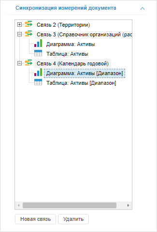 Совет. Для настройки синхронизации измерений во всех блоках аналитической панели нажмите кнопку «Настройки синхронизации измерений». На боковой панели будет открыта вкладка «Синхронизация измерений документа».