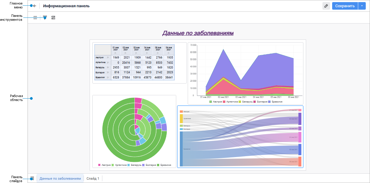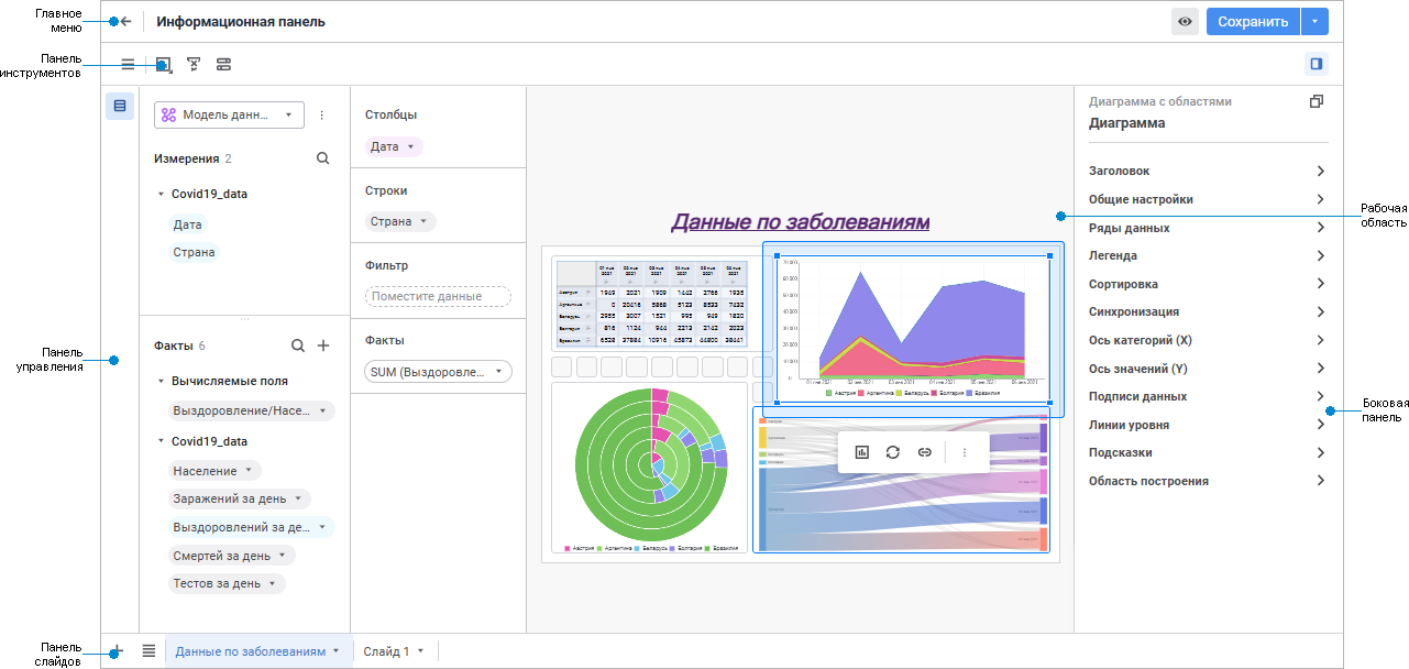 Для работы с готовой информационной панелью смотрите статью «Работа с готовой информационной панелью».