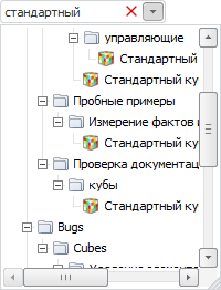 При наборе первых символов в наименовании элементов курсор будет переходить к первому найденному элементу. Данный поиск осуществляется циклически и только по элементам, присутствующим в развернутой части иерархии дерева элементов.