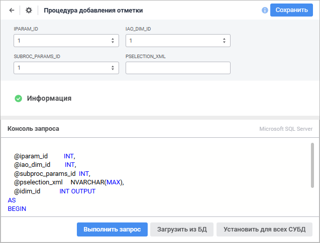 Объект «Процедура» позволяет создавать процедуры и функции для разных СУБД.