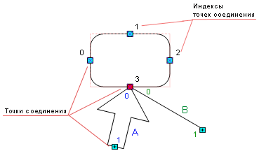 ConnectedCPShapeIndex. Индекс фигуры, соединенной с объектом в точке ConnectionPointIndex (на изображении таких фигур две: A и B).