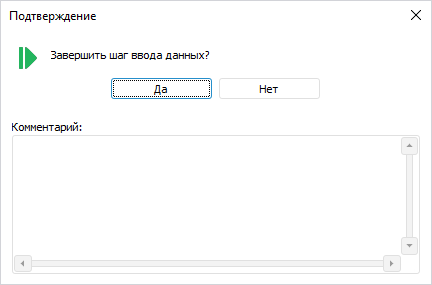 Откроется окно подтверждения завершения шага, в котором при необходимости введите пояснения в поле «Комментарий»: