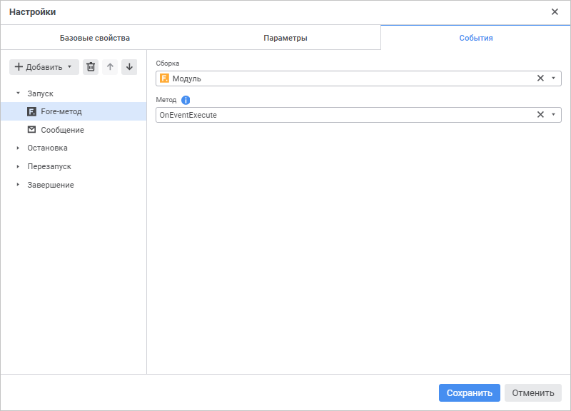 Настройка параметров процесса | Настройка базовых свойств | Управление параметрами