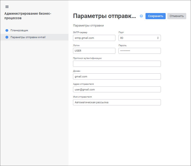 SMTP-сервер. Укажите DNS-имя, по которому доступен SMTP-сервер. Поле обязательно для заполнения;
