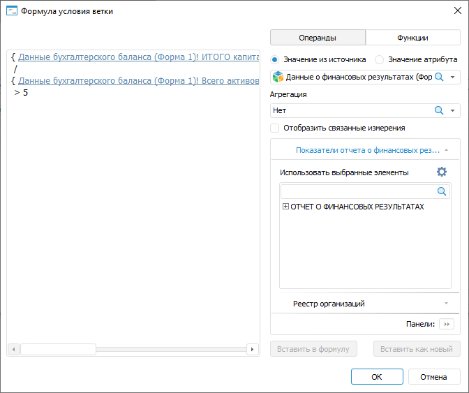 Примечание. Задание и редактирование формулы осуществляется только в окне «Формула условия ветки».