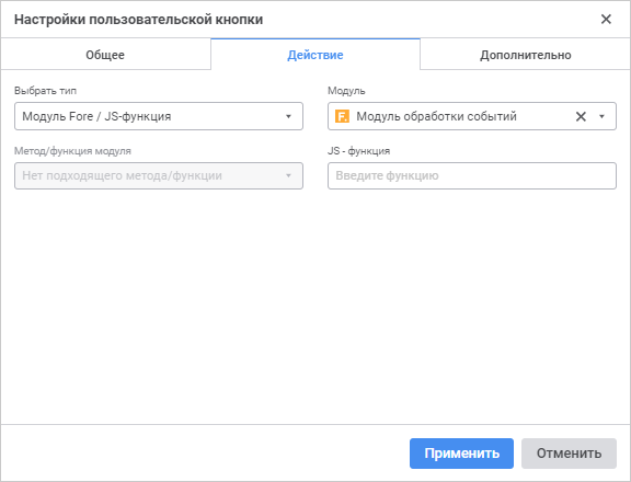 При выборе типа «Модуль Fore/JS-функция» задайте дополнительные настройки: