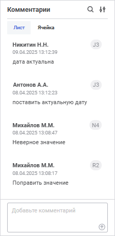 Для пояснения данных в ячейке таблицы доступно добавление комментариев.