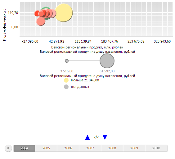 // Создаем массив со значениями цветовой шкалы матрицы var palette = [ "RGB(255,70,44)", "RGB(255,112,91)", "RGB(255,147,132)", "RGB(255,182,172)", "RGB(107,188,128)", "RGB(142,204,158)", "RGB(169,216,181)", "RGB(255,217,0)", "RGB(255,232,106)", "RGB(255,239,153)" ]; // Применяем цветовую шкалу матрицы bubbleChart.applyColorScheme(palette); // Получаем легенду пузырьковой диаграммы var legend = bubbleChart.getLegend(); // Запрещаем автоматический расчет количества столбцов легенды legend.setAutoColumnsCount(false); // Устанавливаем количество столбцов легенды legend.setColumnsCount(1); // Устанавливаем режим разбиения легенды на страницы legend.setPageMode(PP.Ui.LegendPageMode.MultiplePages); // Обновляем пузырьковую диаграмму bubbleChart.refresh();