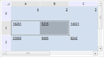 Для выполнения примера необходимо наличие на html-странице компонента TabSheet с наименованием «tabSheet» (см. «Пример создания компонента TabSheet»). Отобразим элемент изменения размера выделения и выделим диапазон ячеек. Разрешим использование плавной прокрутки и выведем шаг плавной прокрутки. Затем проведем серию изменений значений ячеек, после чего отменим две последние операции: