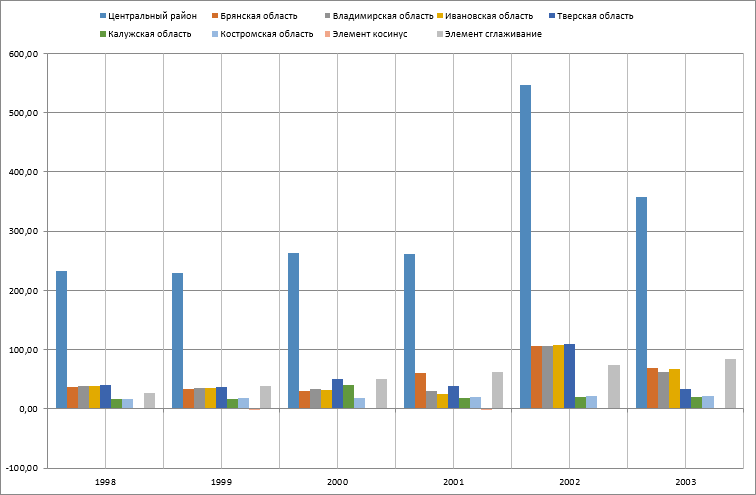 Примечание. Одна таблица может служить источником данных только для одной диаграммы.