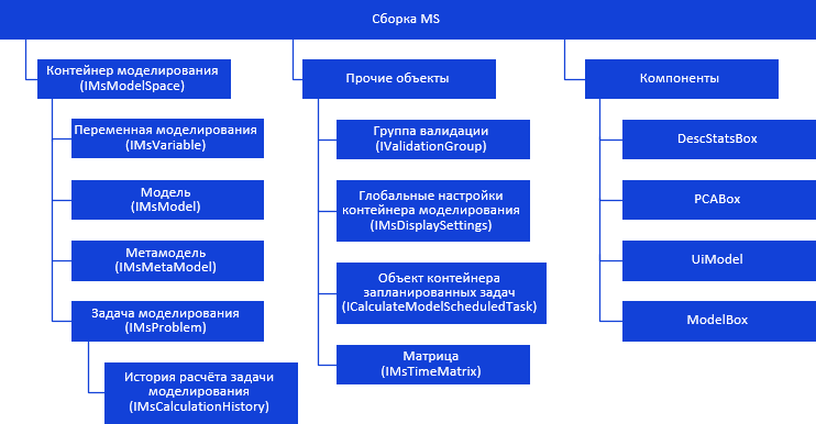 Все классы и интерфейсы в сборке Ms можно разделить на несколько приведённых ниже групп.