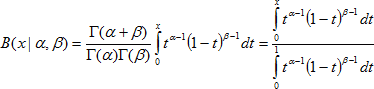 Плотность бета-распределения с параметрами α, β в точке x определяется выражением:
