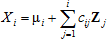 Возвращается значение X = (X1, X2, …, Xd)T. В матричной записи X = μ + CZ.
