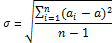 Среднеквадратическое отклонение показывает абсолютное отклонение измеренных значений от среднего арифметического и определяется по формуле: