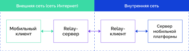 Relay-клиент – это узел, который устанавливает соединение между Relay-сервером и сервером мобильной платформы.