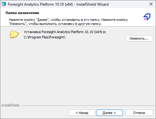 Путь установки продукта «Форсайт. Аналитическая платформа» по умолчанию C:\Program Files\Foresight\.
