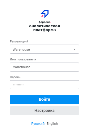 Важно. По умолчанию в веб-приложении скрыта кнопка «Настройка» в целях безопасности. Используйте файл Metabases.xml для формирования списка репозиториев.