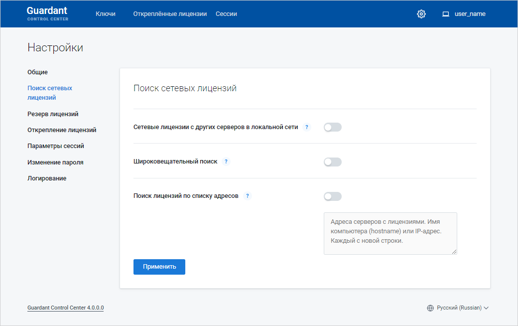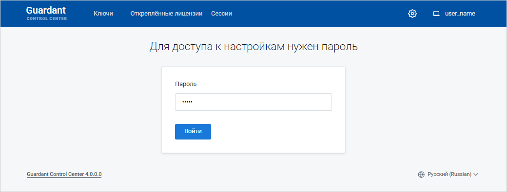 Укажите адрес Guardant Control Center в строке браузера: