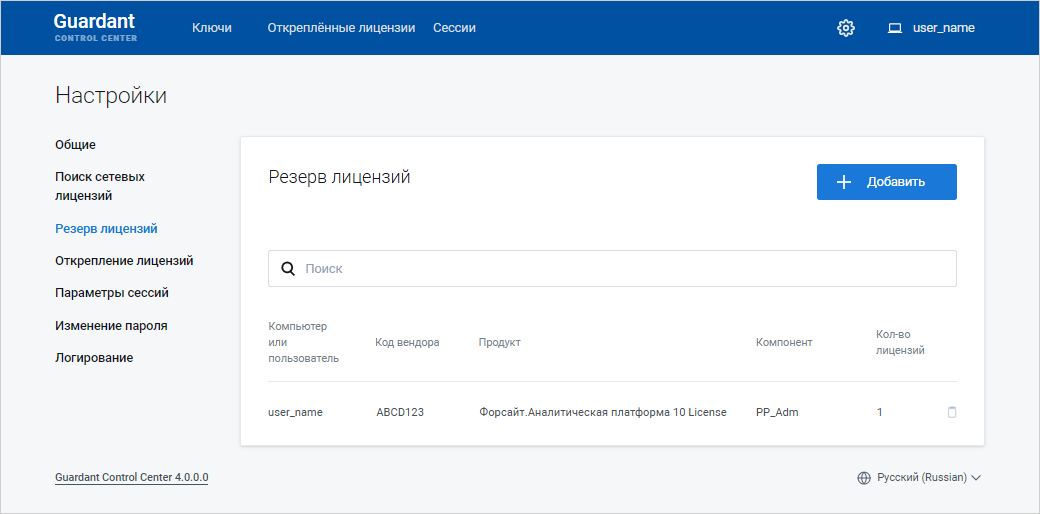 Откройте раздел «Резерв лицензий»: