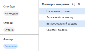 Для работы с измерениями источника данных предназначена панель «Фильтр измерения».