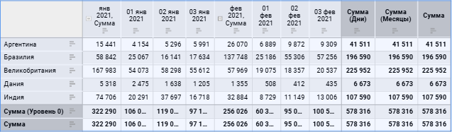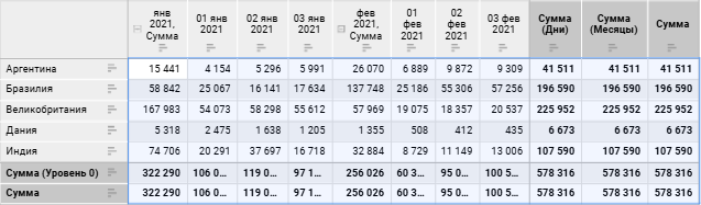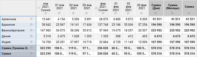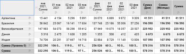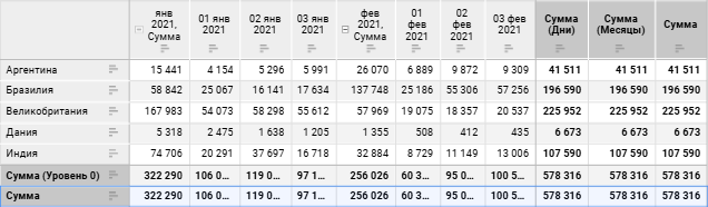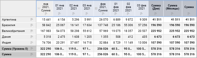 Примечание. Пункты меню «Итоги по строкам» и «Итоги по столбцам» отображаются, если для таблицы включено отображение итогов по строкам/столбцам.