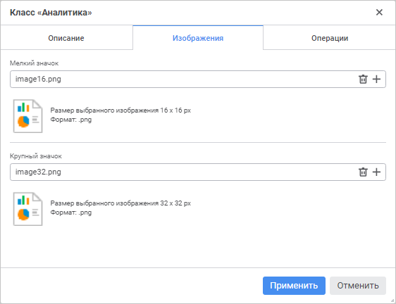 Для добавления изображений пользовательского класса используйте вкладку «Изображение» в окне «Класс <наименование класса>».