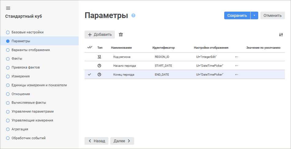 Редактирование параметра