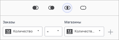 Выберите в раскрывающемся списке условие соответствия полей при объединении таблиц модели данных: