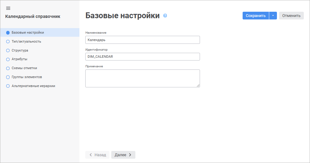 На странице «Базовые настройки» в веб-приложении и «Базовые свойства» в настольном приложении задаются наименование объекта, идентификатор и примечание.