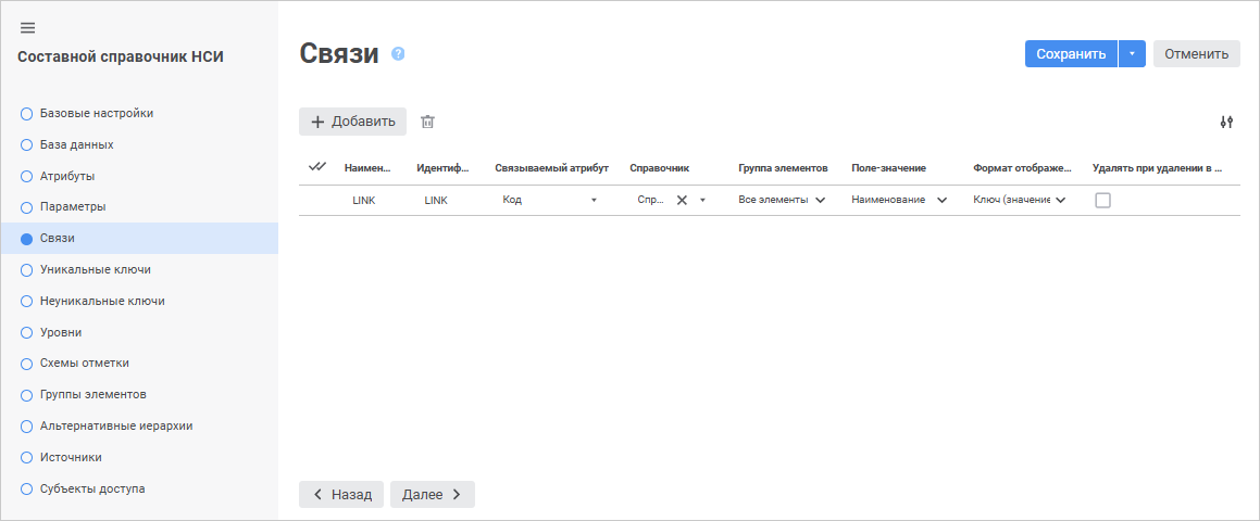 На странице «Связи» в веб-приложении и настольном приложении создаются и настраиваются связи по атрибутам с другими справочниками. Создание связей необходимо: