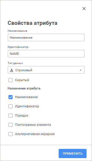 | 1 | Наименование | NAME | Строковый | Наименование |