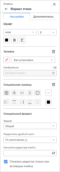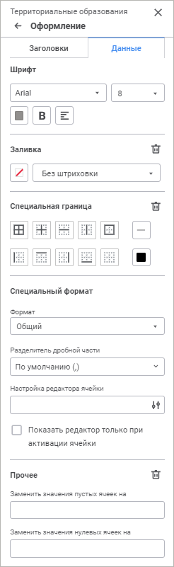 Для настройки оформления выбранного типа области используйте следующие группы параметров боковой панели: