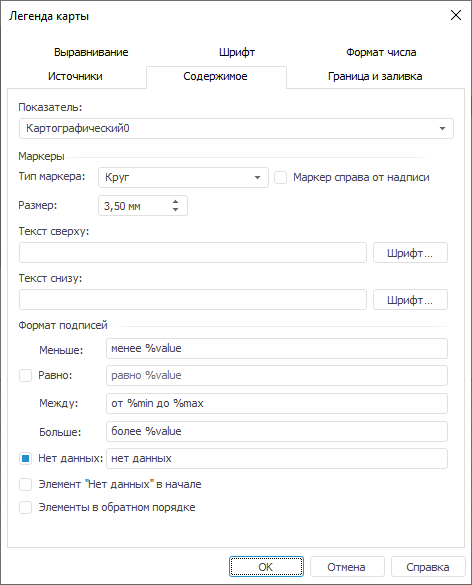 Примечание. При изменении размера легенды происходит ее автоматическое масштабирование с учетом количества заданных колонок, размер шрифта не будет превышать установленного на вкладке «Оформление».